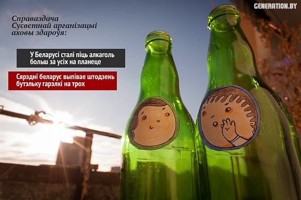 Паводле новай справаздачы Сусветнай арганізацыі аховы здароўя Беларусь цяпер займае першае месца ў свеце па колькасці спажывання алкаголю. За год - па 17.5 літраў чыстага спірту на брата.