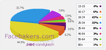 45% беларускіх карыстальнікаў Facebook - маладыя людзі ва ўзросьце ад 18 да 24