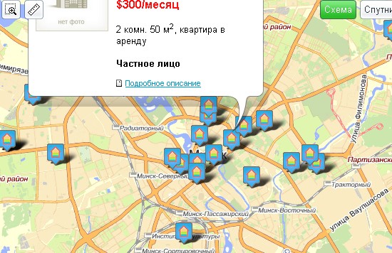 Цяпер кватэру можна зьняць па мапе. Map-сэрвіс на адным з рыэлтарскіх сайтаў