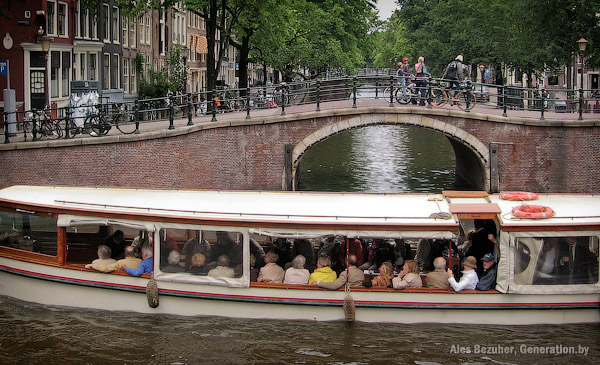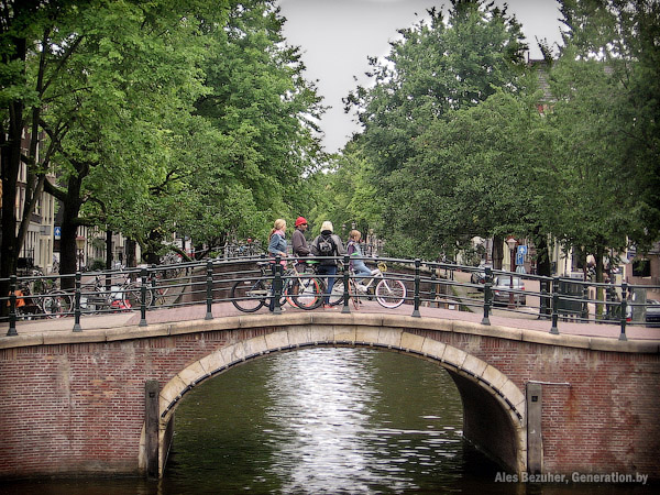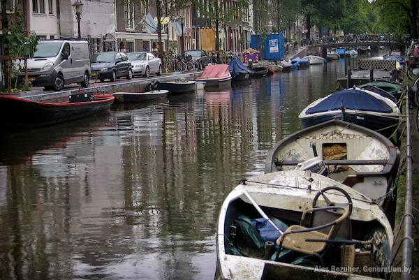 Гуляючы па Амстэрдаме, увесь час хацелася назваць гэты горад Вэнэцыяй. Каналы-каналы-каналы, якія перакрыжоўваліся дзіўным мастамі, запоўненымі раварыстамі і турыстамі. Бывала па каналах, лавіруючы паміж шматлікімі лодкамі і баржамі, на якіх жывуць людзі (увесь час!), праплывалі турыстычныя, а пад вечар і проста прыватныя судны. Каналы зьяўляліся тут яшчэ з 15 стагодзьдзя, і будаваліся дзеля абароны гораду, а пасьля — мясцовымі багацеямі — як выдатны шлях дастаўкі грузаў унутры аднаго з буйнейшых гандлёвых гарадоў Ганзэйскага Зьвязу.