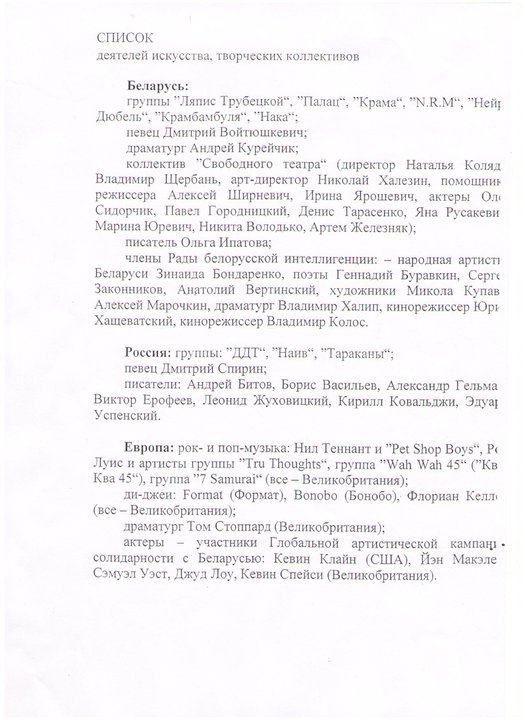 Супрацоўнік Радыё «Бі-Эй» выклаў у сваім акаўнце Facebook фотаздымак новага «сьпісу забароненых». Паводле яго інфармацыі, усе, хто пазначаныя ў сьпісе цяпер мусяць быць забароненыя для згадваньня ў дзяржаўных мас-мэдыях.