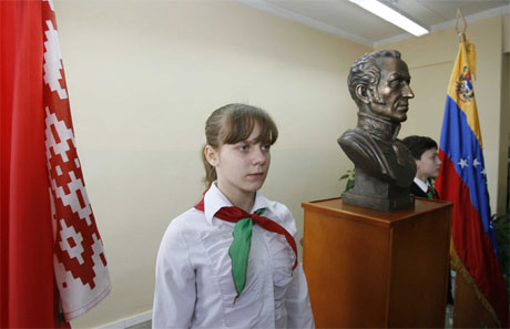 Беларуская піянэрка з нацыянальным героем Вэнэсуэлы і кумірам Уга Чавеса Сымонам Баліварам