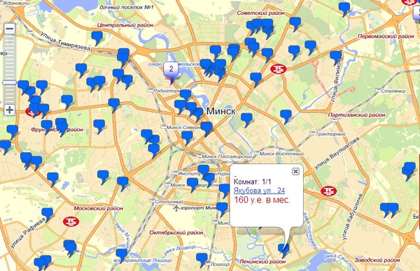 Вельмі шмат прапановаў арэнды кватэраў на захадзе і поўначы сталіцы. Мапа «Твая сталіца»