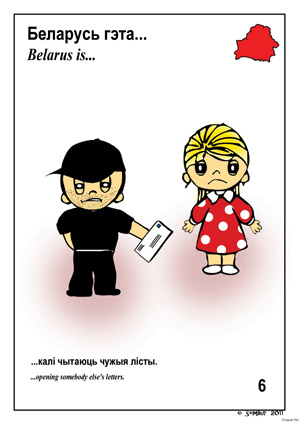 Сямён Буракевіч, малады дызайнэр з Ізраілю, які цяпер жыве ў Празе, так натхніўся стасункамі са сваёй беларускай дзяўчынай, што падрыхтаваў для сяброў ды знаёмых паштоўкі «Belarus is…». Героі і стыль выяваў узятыя з легендарнай сэрыі «Love is…».