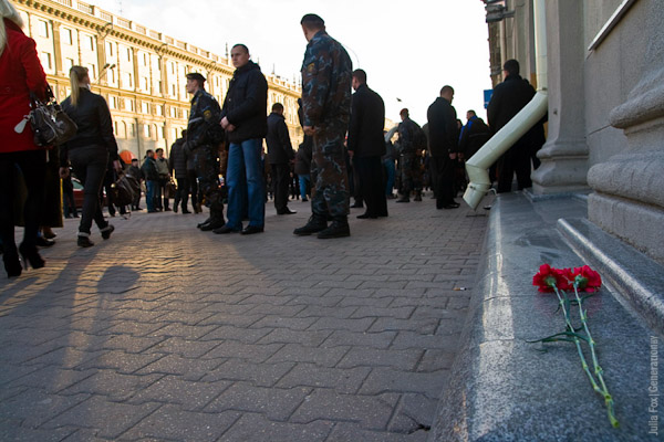 Год таму абставіны 11 красавіка склаліся так, што мне давялося стацца сьведкам чалавечага болю, страху й разгубленасьці. Упершыню мне давялося адчуць жах адчаю. Год таму тут – на цэнтральнай плошчы не пасьпявалі зьмяняць адна адну «Хуткія», шэрагамі бегалі пажарнікі, людзі былі ў шоку, на іх тварах чыталася разгубленасьць, неразуменьне. Яно зразумела: ніхто ня мог паверыць, што выбух адбыўся ў Менску – сталіцы чысьціні і парадку. У вушах чарадой гучалі затворы фотакораў, пакрысе зьяўлялася ачапленьне зь людзей у форме і ня толькі – каб абмежаваць доступ да мейца падзеі. Вынікам трагедыі ёсьць 15 чалавечых жыцьцяў і 387 чалавек атрымалі раненьні розных ступеняў цяжкасьці. Шматлікія дагэтуль ня здолелі акрыяць.