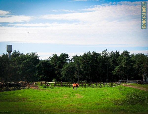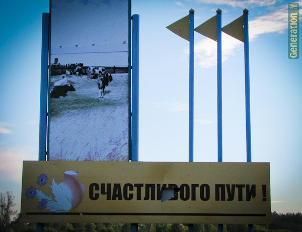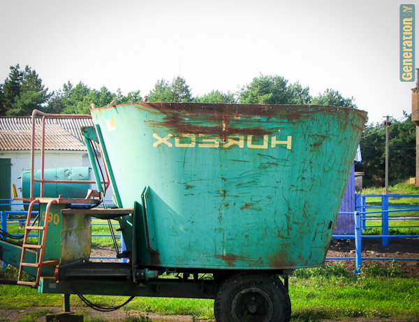 Наступнай кропкай наведвання быў як раз такі мясцовы калгас. Пакуль ішлі, пабачылі некалькі мужыкоў, якія мацавалі дах. Што пацешыла, па ўсёй вёсцы не было заўважана ніводнага алкаша. Амаль у кожным двары жанчыны корпаліся ў агародзе. Мы не сустрэлі ніводнага лайдака ці чалавека, які б проста сядзеў каля плота і адпачываў ці тым больш загараў пад парасонам. Пераважная большасць насельніцтва працуе ў калгасе, атрымлівае свае 2 мільёны і вядзе ўласную гаспадарку, за кошт якой і жыве. Прайшлі праз галоўныя брамы калгасу, нас ніхто не спыніў. Некалькі разоў праходзілі каля адміністратыўнага будынку, але мы так і засталіся без увагі. Калгас як калгас, вельмі шмат стагоў сена, адпаведны пах, да якога даволі хутка звыкаешся, брудныя каровы, каровіны аладкі, у якія я такі уступіла, і горы зерня. Усё даволі прыстойна і чыста. Дарэчы, не так даўно сюды прыязджаў прэм’ер-міністр Міхаіл Мясніковіч.