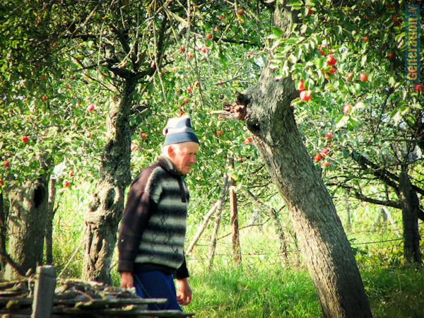 Мы ўзялі па яблыку, уладкаваліся на лаве каля прыпынку, і пачалі чакаць мой аўтобус. Бліжэй да вечара, зрэдку нам пачалі трапляцца людзі. Хто на ровары, хто на возе, цягнулі яны мяхі з бульбай. Пачаўся сезон.