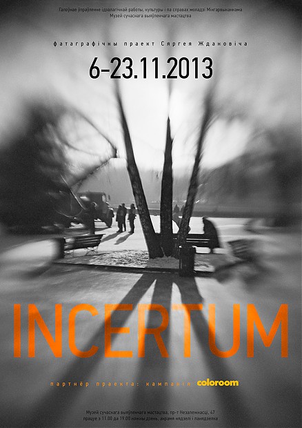 «Серыя фотавыяў INCERTUM – адасоблены погляд на рэальнасць, без канстатавання месца і часу фатаграфаваных аб'ектаў. Ёсць толькі святло, адлюстраванае ад паверхні прадмета і прапанаваная прастора», — кажа аўтар праекта Сяргей Ждановіч.