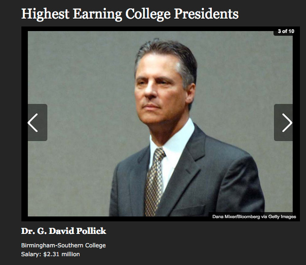 Па дадзеных Forbes, пяць год таму Дэвід Полік уваходзіў у тройку самых высокааплатных прэзідэнтаў прыватных каледжаў ЗША з заробкам у $2.31 млн за год.